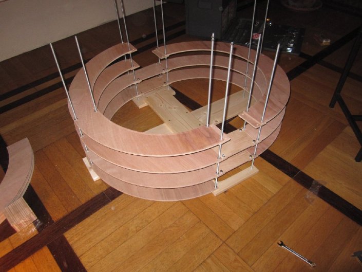 Ich hab mich dafür entscheiden, alles noch mal zu lösen und den Ebenenabstand von 8 auf 7,7 Zentimeter zu reduzieren. Wir reden von ca. 150 Muttern.... seufz. Meine holde Maid merkt richtig an: Den würd ich aber nicht wieder abbauen, sondern als Ganzes wegstellen. Oh ja! Es sei denn zum Thema "Auf- und Abbau" fällt mir noch was ein.